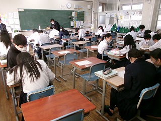明日に前期選抜を控えている人や後期選抜受検を第一志望としている人、すでに私立高校に進学を決定した人が、それぞれの自分の将来に向けて勉強しています。