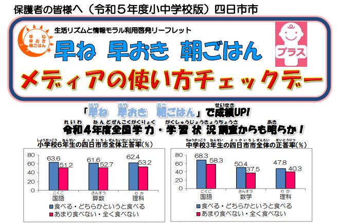 「早ね 早おき 朝ごはん + メディアの使い方チェックデー」というリーフレットが届きました。