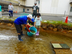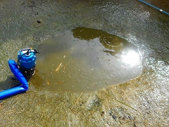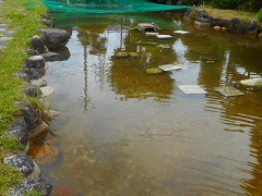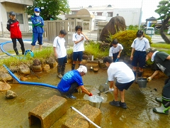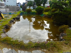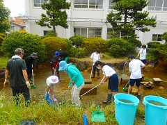 24日(土)の午前中、おやじの会の長谷川さんを中心に、PTA役員さん、吹奏楽部の1年生5名、そして教職員で、昇降口前の池をきれいにしました。
