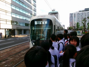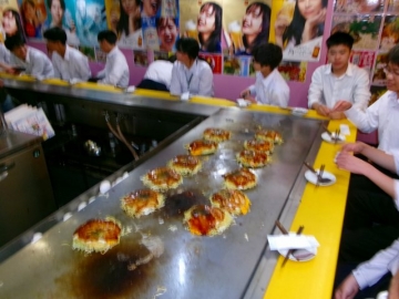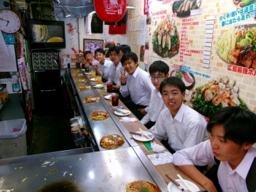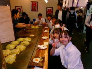 広電に乗り、夕食のお好み焼きを食べに行きました。気さくに話しかけてくださる店員さんと談笑しながらおいしくお好み焼きをいただきました。