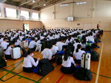 いよいよ25日(日)修学旅行に出発です。本日は、行動隊形の練習、実行委員よりルールやマナーの話、行程の最終確認などを行いました。