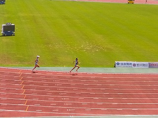 女子1年800m 1年生女子が予選3組で3位に入り、明日のB決勝へと進みました。 女子 800m 3年生女子が予選1組で1位になり、明日の決勝へ進むとともに、全国大会の標準記録を突破し、全国大会への出場を決めました。 また、2年生女子が予選7組で1位に入り、明日の決勝へと進みました。