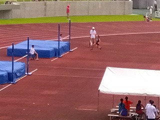 女子走高跳決勝 3年生女子が試技の差で惜しくも入賞を逃しました。