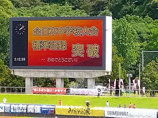 第70回全日本中学校通信陸上競技三重大会が、今日と明日、スポーツの杜 伊勢で行われています。 暑さの中、そして、途中、雷や大雨で1時間ほどの中断もあった中、モチベーションを高く保ち、決勝進出や上位大会への出場、自己ベスト更新を目指し、がんばっていました。 主な結果をお知らせします。 女子1500m 3年生女子が予選3組で2位に入り、明日の決勝へと進みました。