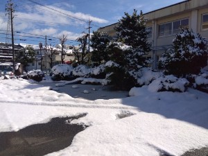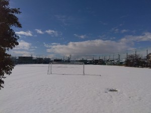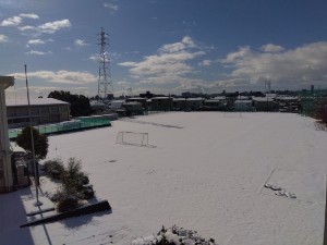 今日の午前中に学校の様子を見てきましたが、雪jとけつつありますが、グラウンドは一面真っ白でした。