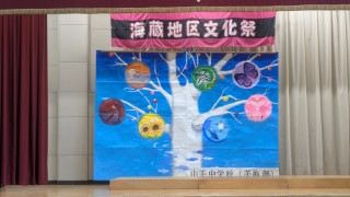 そして、海蔵地区文化祭では、創作部美術コースが作り上げた作品(山手中文化祭でも飾られました)をバックステージとして飾っていただきました。