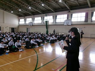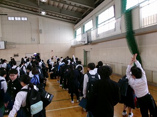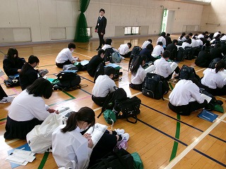 今日は午前中に自然教室の事前指導がありました。体育館に自然教室の荷物を持って集まり、自然教室に向けての確認や持ち物チェックなどを行いました。