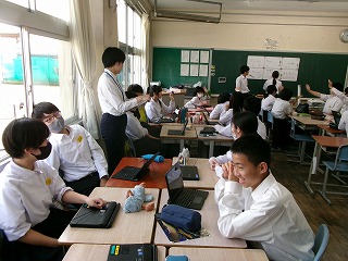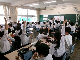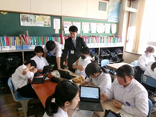 教育実習生は、学活に加わり、生徒が自主的に進める様子を見学したり、助言したりしていました。