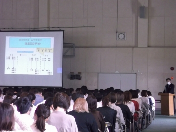 3年生の保護者の皆様に、修学旅行と卒業後の進路についての説明会を実施しました。平日昼間の開催でしたが、多くの方に参加いただきました。