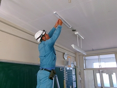 昨年度から、学校の蛍光灯等をLED化にする工事が続いています。