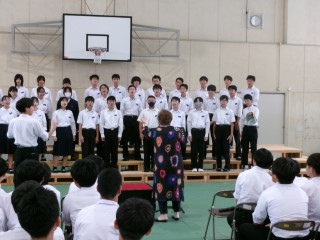 新人戦も終わり、いよいよ合唱コンクールに向けての練習が本格化してきました。今日は午前中に2年生が舞台の設営をしてくれました。お疲れさまでした。午後には3年生が先陣を切って体育館での合唱練習を行いました。声楽家の馬場浩子先生に来ていただき、各クラスの合唱について的確なアドバイスをいただきました。合唱の質が格段に良くなったと思います。31日の文化祭が楽しみです。1.2年生に誇れるような、素晴らしい合唱を期待しています。
