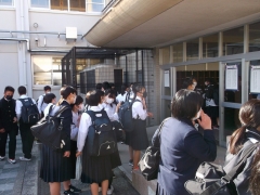本日は令和4年度の着任式・始業式が行われました。3年生として、そして中学校生活最後の一年間が始まりました。昇降口前では新クラス名簿が掲示され、生徒たちの注目している様子から3年生からの活動をとても楽しみにしていることを感じました。