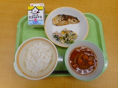 今日の給食は「焼きあじのねぎだれ」「骨こつサラダ」「新たまとさつまいものみそ汁」でした。