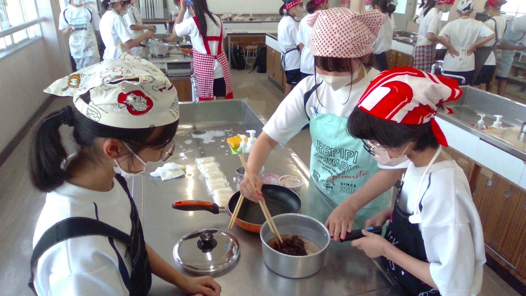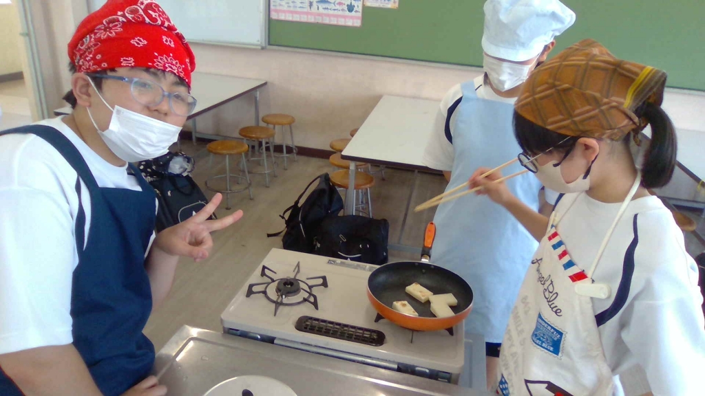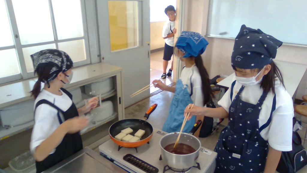 家庭部で調理実習を行いました。メニューはぜんざいでした。もちはフライパンで焼きましたが、とても上手に焼けました。口直しの塩昆布も大人気!少し暑い日でしたが、糖分が補給されてみんな元気になりました!
