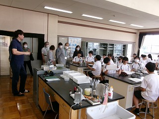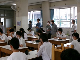 本日は、三重地区の民生委員の方々が来校され、学校の様子を参観していただきました。  校内をめぐり、授業を参観していただく中で、皆さんが集中して授業に取り組んでいる様子に、とても感心されていました。  3年生の美術では、デッサンの授業の最初の段階の見学でした。説明のあと、真剣に描き始めた姿を見て、皆さんが描いた絵がこの後どうなるのだろうとワクワクされていました。  2年生の理科では、顕微鏡を熱心にのぞき込みスケッチする姿や顕微鏡の角度調整を教えあう姿が自然にできていて素敵だなぁとおっしゃっていました。  1年生の数学では、生徒の皆さんが主体的に授業に参加していて、先生とともに楽しく授業を作り上げている姿に、民生委員の方々も授業にのめりこんでいらっしゃいました。