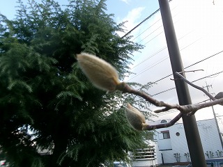 池の横のハクモクレンのつぼみが大きくなってきました。