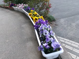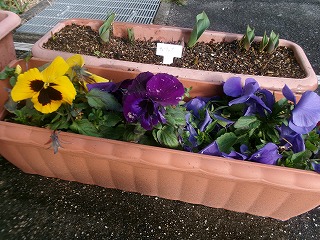 秋に緑化委員さんが植えてくれたパンジーもきれいです。
