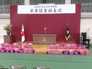 心を込めて作ってくれた会場で、3年生は中学校生活に別れを告げ、新しいステージに向け、旅立っていきました。