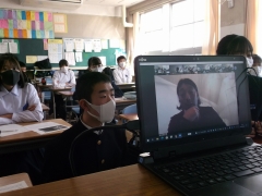 2月3日(木)5.6限目には、その一環として「職業に関する講演会」をズームを通して実施しました。講演者は四日市出身の方で、衣料業界で起業し事業を展開しながら、被災地への支援活動や子どもたちへのスポーツ指導も行っている渡辺さんからお話を聞くことができまた。