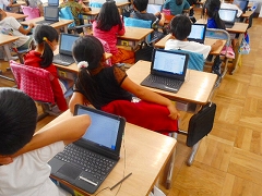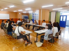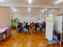 本日は、山手中学校区の海蔵幼稚園、海蔵保育園、大谷台小学校、山手中学校の教員が、海蔵小学校に集まり、5時間目の授業を参観し、その後、テーマ別に会議を行いました。