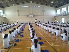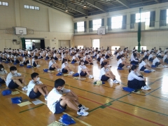 本日は1学期最後の登校日のため、学年集会を開き各クラスの1学期のふりかえりと2学期に改善することを発表しました。