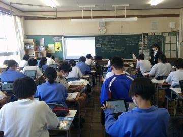 この日のために様々な工夫や準備をし、生徒がわかりやすいように丁寧に授業を進めていました。教科書だけでなくICT端末も活用することで「なぜ太平洋戦争が起きたのか?」を生徒自身で情報を調べながら考えさせようとしていました。