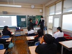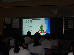 その後、生徒会の本部役員が作ったスライドを使って、学校の1年間の流れや行事の様子、校則などについての説明がありました。
