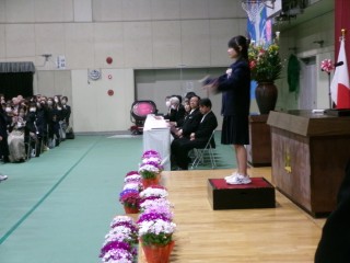 担任の最後の呼名に、一人ひとりが心を込めて「はい」という返事で応え、この仲間とともに奏でる最後の合唱を、素敵な調べに乗せて式場に響かせてくれました。