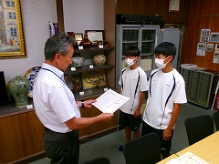 表彰式では、中体連の三泗地区予選を除く1学期の大会等の表彰を行いました。