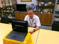 計画では全校生徒が体育館に集まって集会形式で行う予定でしたが、コロナやインフルエンザが流行っていることと、熱中症予防の観点からZOOMを使って校長室から各教室へ配信という形に変更しました。