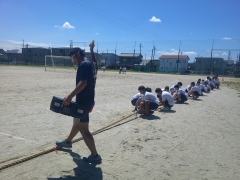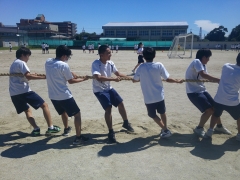 だんだんと涼しさを感じる日が増えてきた中、9月21日に予定されている体育祭に向けての練習が始まりました。3年生の学年種目は「つなひき」です。シンプルですが、全員の力をいかに合わせるかが勝敗のポイントになってきます。