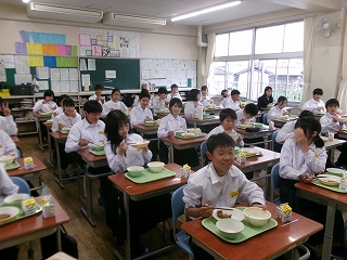 クラスによっては、2・3年生よりも早く食べ始めているクラスもあります。