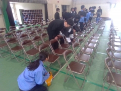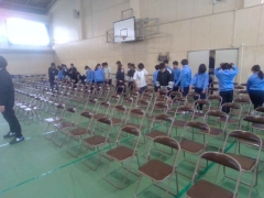 2年生は、今日の5,6限目に、卒業式に向けて、会場作りを行いました。パイプ椅子を綺麗に並べたり、舞台を作ったり、大変な作業が多かったですが、お世話になった先輩の卒業式なので、一生懸命動いてくれていました。
