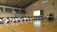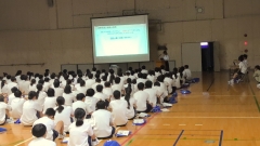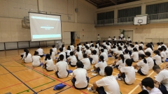本日、人権学習の取り組みとしてクラス代表の発表会を体育館で行いました。