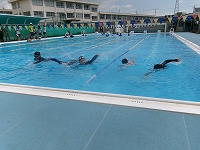 朝のプールはちょっと寒かったようですが、3年生は気持ちよさそうに、楽しそうに、泳いだり、遊んだり(?)していました。