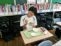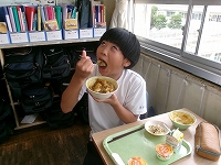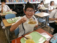 今日はカレーライス、大なべで作っていることもあり、とってもおいしいです。