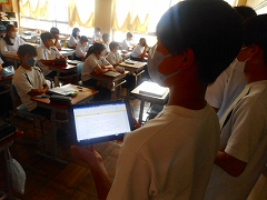 発表原稿をタブレットに書いておいて、タブレットを見ながら発表する人もいました。