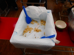 これまではご飯が残っていることが多かったのですが、今日のタケノコご飯は特に美味しくて、食欲をかきたてたようで、容器が空っぽに近い学級がいくつもありました。