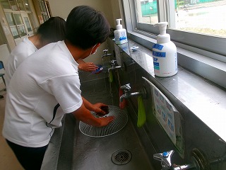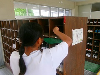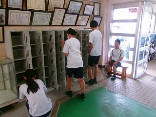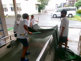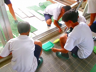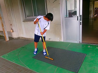 昇降口の砂をとったり、下駄箱を履いてくれたり、シートにたまった砂をはたいたり、普段できないこと、やってくれています。