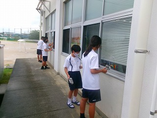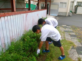 草抜き、来客スリッパを拭いてくれたり、職員室の窓を拭いてくれたり、