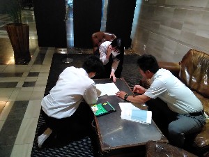明日の朝の集いに向けて、念入りな最後の打ち合わせ