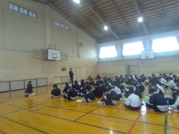 本日の6限目は、明日から7日まで行われる職場体験の事前指導を体育館で行いました。事前指導では、遅刻しない、帰着連絡をするといった職場体験で注意する点や最善の準備をして職場体験に臨もうという話をしました。