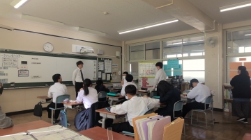 海蔵小学校・大谷台小学校の先生方が、異校種交流に見えました。中学校で授業・合唱練習・部活動など体験してもらい、小学校とは少し違った活動を体験していただく機会となっています。「中学生は、様々な場面で自分で考えて判断・行動する機会が多く、すごいなあと感じた。小学校での学級活動に生かしたい。」と感想を述べられていました。
