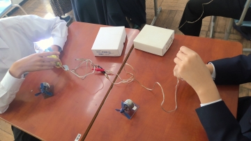 発電機を回して電気を作る授業でした。