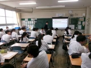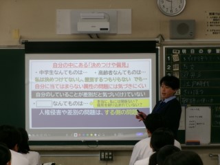 講師として三重県人権センターの方に来ていただき、一クラスずつメディアリテラシーについて学習しました。