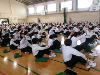 1年生のみなさんは、初めて立った舞台に緊張したり、いつもの声量ではあまり歌声が響かない体育館に戸惑ったりしながらも、今の自分たちにできる精一杯の合唱をしていました。また、ほかのクラスの合唱を聴きながら、良いところや感想をプリントに記入していました。