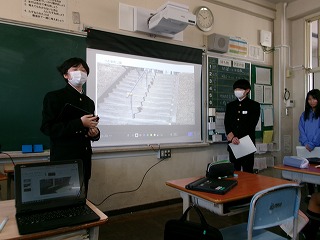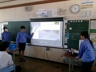 5限目にクラスで発表を行いました。自分の班が調査した地区で見つけたユニバーサルデザインや、地域に住むすべての人がより過ごしやすくなるためにはどうすればいいかを発表しました。