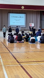 保健体育委員会に所属する児童による、薬についての○×クイズは
