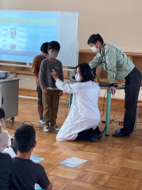 心臓の音を聴く機械では、挙手してくれた子どもたち何名かが自分の