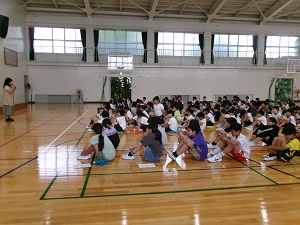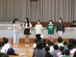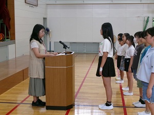 夏休みの作品の表彰と、後期学級委員の認証を学校集会でしました。